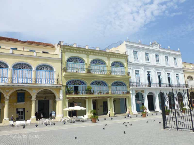 Next we walked to Plaza Vieja where a great deal of restoration has already occurred. It is a big open square surrounded by buildings that were once home to Cuba's very wealthy sugar barons. Many of these have now been restored and are quite beautiful again. Today the sugar barons are gone and these historic buildings serve as hotels restaurants, shops, and so on. The very large open space in the center of this plaza was once home to military exercises and parades.